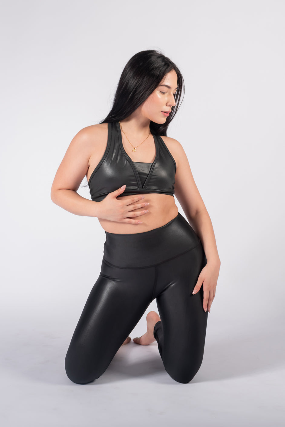 LEGGING BRILLANTE fabricado con tela de alta densidad (tela gruesa), su función principal es comprimir y moldear la figura de la mujer.